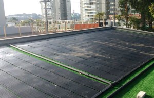 Piscina com aquecimento solar e a opção de sistema híbrido.